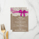 Carte de menu Rustic Pink Bow Mariage Collection