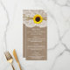 La collection de tournesol rustique est un design époustouflant avec un bel arrière - plan rustique effet burlap avec un cadre romantique vintage effet dentelle blanche fini avec un superbe tournesol et ficelle. Ces menus peuvent être personnalisés pour vos occasions spéciales et rendraient le modèle parfait pour les menus mariages, les menus de douche nuptiale, les menus de fiançailles, les menus de fête d'anniversaire et bien plus encore. *Veuillez noter que Zazzle ne vend que des produits imprimés, de sorte que cet article n'a pas de vrais boucles, dentelle, tournesol ou ficelle.