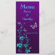 Cette carte de menu moderne et tendance violet, bleu aqua et gris argenté à fleurs a des papillons gris argenté métallique LOOK ainsi que des fleurs et des vignes bleu turquoise qui correspondent à la faire-part de mariage ci-dessous. Il est conçu sur une carte à rack avec un avant brillant, et fini mat sur le dos. Si vous désirez une carte de menu sur papier d'invitation pour correspondre à vos invitations, ou si vous avez des demandes d'articles supplémentaires ou de modifications, veuillez envoyer un courriel à niteowlstudio@gmail.com avec votre demande.
