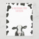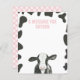 Carte de message de la capsule de temps de la Saint-Vache de premier anniversaire avec l'aquarelle de vache, la conception d'impression de vache et le plaid rose en arrière.