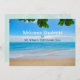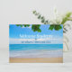 Bienvenue en classe, message des cartes d'enseignant. Personnalisez avec du texte à l'avant et à l'arrière. L'image est d'eau tropicale bleue de l'océan et de sable de plage. Exemple de texte : "Bienvenue aux élèves à [nom de l’enseignant ici] Première / N’importe quelle note". Au verso, créez un message à l'élève.