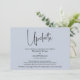 Si vous avez dû interrompre de façon inattendue la planification de votre grande date, voici une option simple mais distinctive. Dans cette pièce, la police d'écriture moderne a été utilisée pour créer un graphique simple représentant le mot "Mettre à jour". Utilisez les champs modèles pour ajouter vos détails personnels et faire de ce design moderne votre propre. L'arrière - plan peut être changé en n'importe quelle couleur. Toutes les couches ont été ajoutées séparément et laissées déverrouillées pour vous offrir la plus grande quantité de contrôle de conception. // 130 //