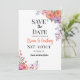 Célébrez votre jour spécial avec cette élégante carte "save the date" florale mettant en vedette des fleurs orange et violettes à l'aquarelle. Parfaite pour les annonces de mariage en toute saison, ce modèle personnalisable de save the date pour mariage est conçu pour impressionner vos invités avec son look romantique, moderne et intemporel.