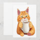 Carte adorable de sauvegarde de date mettant en vedette un chat orange mignon tenant une tasse à café. Ce design ludique et charmant est parfait pour les couples qui aiment les chats, les animaux de compagnie et les mariages sur le thème des animaux amusants. L'illustration chaleureuse et amicale ajoute de la personnalité et une touche légère à votre annonce de mariage. Idéal pour les amoureux des animaux qui veulent une façon unique et mémorable de partager leur journée spéciale avec leur famille et leurs amis. Personnalisez facilement la carte avec vos noms, date de mariage et détails de l'événement pour créer une invitation personnalisée qui correspond à votre célébration.