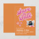 Marquez le début de votre voyage vers l'éternité avec notre carte "Save the Date" rétro rose et orange ! Mêlant l'attrait intemporel du design rétro à une touche contemporaine et fraîche, ce design trouve l'équilibre parfait entre nostalgie et élégance moderne. Les teintes vibrantes de rose et d'orange insufflent à votre carte "Save the Date" une énergie joyeuse et dynamique. Texte entièrement personnalisable et téléchargement d'une photo chérie pour créer un souvenir unique et personnel.