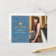 Cette élégante et classique carte postale d'annonce de diplôme présente votre photo et un fond bleu avec un bonnet de diplômé en paillettes de faux or et une partition musicale. Personnalisez-la selon vos besoins. Vous pouvez trouver des produits assortis dans ma boutique.