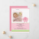 Notre mignon éléphant rose avec une carte de naissance photo bébé fille est une façon douce d'annoncer à votre famille et à vos amis que votre petit amour est arrivé. La carte de naissance photo présente le plus mignon petit éléphant tenant une fleur. Ajoutez votre photo et vos informations et vous êtes prêt à partir ! © cocoa studio