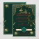 Célébrez votre cérémonie sacrée de Nikah avec cette élégante invitation de mariage musulmane qui présente un riche fond vert émeraude et des motifs islamiques dorés luxueux. Inspirée par les dessins arabesques traditionnels arabes, cette invitation reflète la foi, la sophistication et la beauté intemporelle.