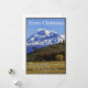 Une carte de Noël personnalisable avec une photo peinte du mont Shasta.