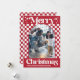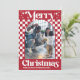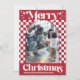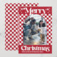 Une grille à carreaux rouge et blanc rétro habille cette carte de vœux lumineuse pour les fêtes. Avec un cadre photo à arc en ligne rouge joyeux et un espace pour votre message de vacances spécial.