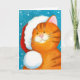 Chat tabby orange mignon portant un chapeau de Père Noël et entouré de neige. Carte de Noël festive avec message de vacances personnalisable à l'intérieur. Supprimez le texte personnalisé si vous souhaitez que la carte soit vide à l'intérieur. Oeuvre © 2009 Lisa Marie Robinson
