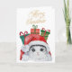 Jolie carte de Noël avec une peinture à l'aquarelle d'un chat portant un chapeau de Père Noël.
