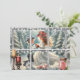 Une belle scène hivernale de deux enfants habillés dans leur plus beau costume de vacances occidentales, dansant une valse de Noël dans la neige. Visionné à partir d'un volet de fenêtre gelé. Bougies qui brillent à l'intérieur. Sucres de canne peints sur l'arbre... "La valse de Noël" est une chanson de Noël mémorable. Nostalgique, pays des merveilles hivernales. Personnalisez avec le nom de votre famille. Une belle et amusante carte de Noël familiale.