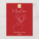 Arrière - plan rouge, et un renne blanc abstrait d'une ligne. Personnalisez et ajoutez un logo, un nom et une année de votre entreprise. Texte : Joyeux Noël. Retour : ajoutez votre message. 1 feuille = 1 invite imprimé bord à bord.