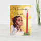 Carte de Noël afro-américaine vintage avec ange disant une prière de Noël devant une bougie.