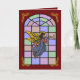 Un ange qui trompe au centre d'un vitrail voûté en fait une belle carte de Noël colorée. Les boucles d'or aux coins complètent le look festif. Tout le texte personnalisable peut facilement être changé pour dire ce que vous voulez. D'après mon image numériquement originale.