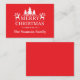 Cette carte de Noël festive est affichée en rouge dans la taille de la carte à plat avec une empreinte de cerfs de Noël joyeux. Customisez cette carte et changez le nom de l'exemple en votre nom.