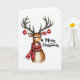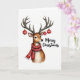 Éclairez les vacances de quelqu’un avec une carte de voeux de Noël festive avec un tableau d’aquarelle charmant d’un cerf! 🦌 Cet adorable cerf porte un foulard rayé rouge et blanc et possède d'élégants bois gris décorés de trois joyeuses décorations de Noël. Le cerf se démarque contre un simple arrière - plan blanc, rendant le design pop. À droite de la tête du cerf, les mots "Joyeux Noël" sont magnifiquement écrits en caractères noirs cursifs, ajoutant une touche d'élégance à la carte. 🎅 🎄 🎁 Cette carte joyeuse est parfaite pour répandre la joie et les voeux chaleureux à vos proches !