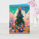 Cette carte de sapin de Noël stylisé reflète l'influence de Gustav Klimt qui a vécu entre 1862 et 1918 à Vienne, en Autriche. Klimt était surtout connu pour ses peintures de femmes et les arrière-plans intéressants mettant en vedette de l'or et d'autres formes colorées tout autour du sujet et de ses vêtements.