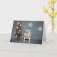 Carte de Noël avec bébé chinchilla tenant un floco