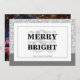 La carte de Noël noire, grise et blanche de TeeLofts présente une typographie moderne et audacieuse «Merry & Bright» superposée sur un esperluette gris clair comme éléments de design principaux. La bordure extérieure est une illustration linéaire de feuillage de vacances en gris et blanc. Il est facile d'ajouter les noms de votre famille sur le devant et une photo au verso daté. #Noël #Fêtes #CartesDeNoël