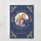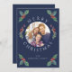 Carte de Noël avec photo de Noël de botanique hivernale bleu marine moderne
