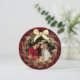 Plaid buffle avec cadre de couronne d'or rond carte de vœux de Noël avec photo. Une simple perforation et un ruban et cette adorable carte peut facilement devenir une décoration ou un ornement d'arbre.