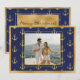 Carte de vœux de Noël à thème nautique. Belles ancres dorées fausses sur fond bleu marine. Cadre métallisé doré faux. Ajoutez vos photos de famille favorites pour personnaliser cette beauté. Changez les noms et l'année. Très chic. Parfait pour tous les propriétaires de voiliers et de yachts.