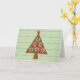Mon œuvre d'art originale est présentée sur cette jolie carte de vacances, composée d'un sapin de Noël de style graphique conçu avec un style rétro dans des tons verts et roses, posé sur un fond à motif rayé vintage avec un léger aspect défraîchi, ce qui en fait une carte jolie et festive. L'intérieur de la carte indique "Que votre Noël soit orné de joie et rempli d'amour. Passez de merveilleuses fêtes et une bonne année !" pour un vœu de Noël simple et sincère à l'intention de tous.
