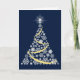 C'est une jolie carte qui présente un sapin de Noël fait avec un assortiment de flocons blancs. Une guirlande couleur or orne l'arbre. Il est sur un arrière - plan bleu marine.