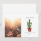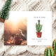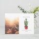 Illustration d'un cactus dans un panier avec un nœud rouge. Le cactus est décoré de lumières de Noël, de décorations de Noël et surmonté d'une étoile. Personnalisez le nom, l'année et la photo.