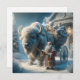 Carte de Noël avec bison tirant un chariot de jouets-cadeaux de Noël et Père Noël. Personnalisez-la avec votre propre message et faites-en votre propre carte.