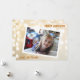 Cartes de Noël personnalisées. Jolie carte de Noël avec des lumières scintillantes en bokeh blanc et or pour les fêtes.