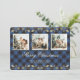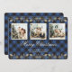 Carte de Noël Blue Plaid Gold Holly 3 Photo Joyeux