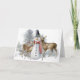 Composite aquarelle de bonhomme de neige et de cerf dans un cadre forestier.