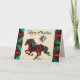 Personnalisez cette carte de Noël Cheval du Sud-Ouest "Unique" et "Une pièce unique" ! Elle présente une silhouette de cheval au galop dans le style du Sud-Ouest... sur un fond de grès... entourée de bordures turquoise, noires et orange !