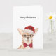 Carte de Noël du Chihuahua. Chihuahua portant une cravate arc, du verre et un chapeau santa.