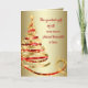 Carte de Noël chrétienne avec un beau ruban rouge et or arbre de Noël sur un fond or élégant. Cette belle carte de Noël chrétienne rouge et or est facilement personnalisable avec votre nom ou le nom de votre famille, ou vous pouvez la laisser telle quelle et ajouter votre message manuscrit à l'arrivée.