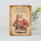 Répandez votre fête avec notre charmante "Classic Santa Claus Happy Christmas Card". Cette décoration festive présente une joyeuse représentation du Père Noël, habillé de son emblématique costume rouge et de son casquette. Avec un sourire chaleureux et des yeux scintillants, Père Noël exsuce l'esprit de joie et de générosité de Noël. Ses gants verts et sa ceinture noire ajoutent une touche classique à sa tenue traditionnelle. La carte est placée contre un arrière - plan de style vintage avec un aspect de parchemin texturé et chaleureux, lui donnant une sensation nostalgique et intemporelle. L'expression "Joyeux Noël" est élégamment scénarisée en haut dans les tons terreux, complétant l'esthétique vintage globale. Cette carte est parfaite pour envoyer des voeux sincères à des amis, à des familles ou à des collègues pendant la période des fêtes.