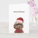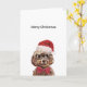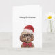 Carte de Noël de Brown Cockapoo. Cockapo Brown portant une cravate arc, du verre et un chapeau santa.