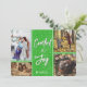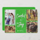 Montrez vos photos de famille préférées avec une carte de Noël qui dit "Confort & Joie". Un arrière - plan vert avec l'apparence de la parties scintillant, et lignes propres autour de vos photos. Ce sera amusant de créer votre ensemble de Noël pour cette carte !