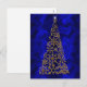 Cette carte de Noël très élégante et moderne présente un arbre de Noël doré composé de formes de flocons de neige métalliques dorés. Derrière se trouve un magnifique motif bleu abstrait.