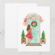 Carte de vacances de Noël avec aquarelle de mode illustration de brune fille et couronne de Noël sur une porte.