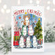 Chats d'aquarelle de Whimsical Merry Catmas carte de Noël. Personnalisez avec votre propre texte de salutation.