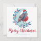 Carte de Noël mignonne avec une aquarelle illustrant un oiseau sur une lune.