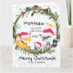 Une couronne de sapins et un groupe d'animaux de la forêt prêts à célébrer le premier Noël de bébé avec lui. Envoyez une carte de premier Noël à votre petit-enfant. Personnalisez tout le texte, des noms au message intérieur.