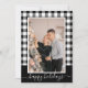Joyeux Fêtes ! Carte à plat photo personnalisable avec plaque de buffle noir et blanc à l'avant et à l'arrière avec typographie de script. Personnalisez en ajoutant votre photo et vos noms préférés. Voir notre site Web pour plus de cartes de Noël et d'idées de Noël—> www.tkmpartyprintables.com