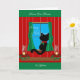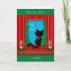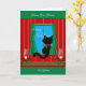 Cette mignonne carte de Noël en Chat Noir comporte un chat noir avec un col rouge et des feuilles verts saints assis dans une fenêtre enneigée, attendant que sa famille rentre à la maison pour Noël ! Cette adorable carte de Noël Black Cat serait une façon réfléchie d'envoyer vos voeux de vacances à vos proches ou à votre amoureux des chats préféré cette année! !