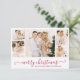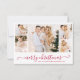 Élégante calligraphie Rouge Script 5 Photo Collage Cartes de Noël. Cette carte de voeux festive et minimaliste de cinq (5) jours fériés avec une belle grille photo collage et dit "Joyeux Noël"! Le texte de salutation "Joyeux Noël" est écrit dans une belle main lettré tourbillonnant swash-tail police type rouge et blanc. À l'envers, dessiné par le motif de gribouillis de pin. Jolie carte de voeux pour votre famille et vos amis en hiver.