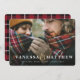 Faire-part de sauvegarde de photo d'ampersand d'or avec dos à carreaux rouge. La couleur du dos peut être personnalisée. Fait partie d'une collection.